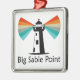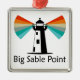 Ornement Carré Argenté Phare de Big Sable Point Arc-en-ciel