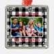 Ornement Carré Argenté Photo de Noël Flambeaux de neige Nom Buffalo Check