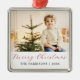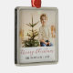 Ornement Carré Argenté Photo de Noël moderne avec calligraphie Joyeux Noë