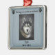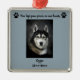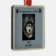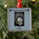 Cet ornement en métal éditable présente une image d'un chien avec les mots "Vous avez laissé des empreintes de pattes dans nos cœurs." au-dessus et le nom du chien avec les dates de sa vie.