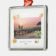 Un ornement moderne de Noël avec un design simple et amusant avec une étoile de mer, un palmier, une boisson de coco et des coquillages, accuse votre photo de plage préférée avec le texte en option.