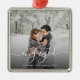 Ornement Carré Argenté Premier Noël Engagé Photo personnalisée Script bla