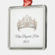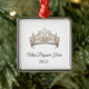This silver-colored premium metal ornament is shown with a sparkling crystal tiara with black text on a white background.