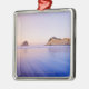 Ornement Carré Argenté Roche de meule de foin aux vagues bleues de