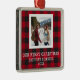 Ornement Carré Argenté Rustic Buffalo Plaid First Christmas