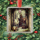 Ornement Carré Argenté Rustic Farmhouse Cow Horse Country Christmas Rural