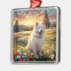 Samoyed Dog sitting in a meadow of flowers. Puzzles, planners, notebooks, ornaments with this design in my stores.. Lots of pet and scenery designs in my stores. Add this design to other products. Add text.