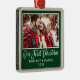 Script de pinceau moderne Notre première photo Couple de Noël Ornement vert