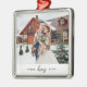 Ornement Carré Argenté Simple Love Script Personnalisé Couple Photo