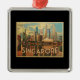 Ornement Carré Argenté Skyline de Singapour