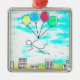 Ornement Carré Argenté Survoler La Ville Avec Des Ballons