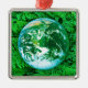 Image de la Terre comme un marbre vert contre un lit de feuillage luxuriant - un collage numérique pour promouvoir la conscience écologique