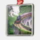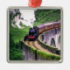 Ornement Carré Argenté Train de locomotives sur le pont