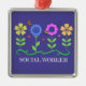 Ornement Carré Argenté "Travailleur Social", Fleurs De Printemps Graphiqu