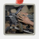Ornement Carré Argenté Un Marine charge une mitrailleuse M-240G