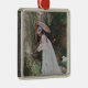 Ornement Carré Argenté Une dame dans un jardin qui soigne ses fleurs avec