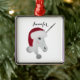 Unicorn Magical Christmas Personnalisé Metal Ornament fait une idée cadeau élégant pour un amant de licorne! La belle licorne blanche porte un chapeau de Père Noël rouge et le nom customisé est sur la partie supérieure de l'ornement de Noël. L'Arrière - plan est blanc et est disponible dans une variété de couleurs. REMPLISSEZ SIMPLEMENT LE NOM SUR LE MODÈLE ZAZZLE MONTRÉ POUR VOIR VOTRE PROPRE ORNEMENT PERSONNALISÉ