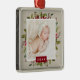 Belles décorations de Noël de gardiens personnalisées avec vos photos et texte. Cet élégant design présente une bordure de verdure d'aquarelle et des fleurs en vert et rouge sur un arrière - plan en faux lin. Ajoutez votre photo et l'année ou tout autre texte personnalisé. Utilisez les outils de conception pour choisir n'importe quelle couleur arrière - plan, modifier les polices de texte et télécharger plus de photos pour créer un ornement photo de Noël de type. Un merveilleux cadeau de conservation pour les familles, les jeunes mariés ou le premier Noël du bébé. Choisissez parmi tous nos styles de décoration ou utilisez l'option de transfert de conception pour ajouter cette conception à n'importe quel produit.