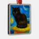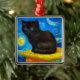 Ornement avec un chat Van Gogh dans le style de la nuit étoilée! Un chaton noir moelleux perche sur une table contre un ciel bleu nuit et une lune jaune. Un cadeau à la purr pour les amoureux de les chats et collectionneurs d'art hollandais !