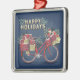 Ornement Carré Argenté Vélo de Noël rouge avec présentateurs