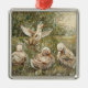 Ornement Carré Argenté Water Play Whimsical Farmhouse Duck Family Pond