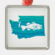Ornement Carré Argenté Wave Fishing de l'État de Washington