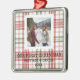 Capture the magic of your first holiday together with this personalized “Our First Christmas” metal ornament. Designed with a festive white plaid background in classic red and green tones, it highlights your favorite couple photo for a warm, timeless holiday look. Add your names and year to create a one-of-a-kind keepsake — perfect for newlyweds, engaged couples, or as a heartfelt gift. Crafted from durable metal with a glossy finish and red ribbon, it’s a beautiful addition to any Christmas tree.