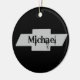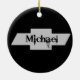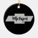 Un ornement Chevy rond noir avec Michael dessus.