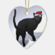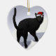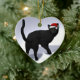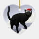 Ornement Cœur En Céramique Chat noir avec Casquette Père Noël