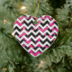 Ornement Cœur En Céramique Chevron Cow Hot rose et noir
