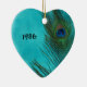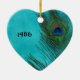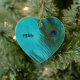 Ornement Cœur En Céramique Deux Plumes Aqua Peacock