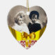 ORNEMENT CŒUR EN CÉRAMIQUE ÉLÉGANT MODÈLE PHOTO BLANC ROUGE DAMASK RIBBON