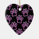 Ornement Cœur En Céramique Empreinte de patte de chien de Néon rose