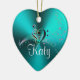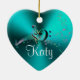La musique personnalisée de turquoise note le coeur de vacances. Un coeur brillant de vert bleu avec les notes musicales, un coeur triple de clef basse et votre nom. Un grand cadeau pour votre musicien ou mélomane préféré. Complétez votre nom à l'invite et customisez comme désiré.