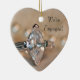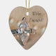 Il a proposé et vous avez accepté et dit OUI! Vous êtes maintenant fiancée pour être mariée. Commémorez la journée qu'il a proposée avec l'élégant ornement en forme de coeur de la ceinture de diamant de Marquise. Customisez-le avec les noms personnels de la mariée et du marié et la date à laquelle il a posé la question. Cette coutume classe We're Engaged Ornament présente une photo peinte numériquement d'une bague de fiançailles en diamant taillée de marquise et d'un collier blanc de perles.
