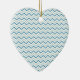 Ornement Cœur En Céramique Motif Aqua Blue Chevron