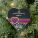 Ornement Cœur En Céramique Noir blanc damassé mauve coeur Enregistrer la date