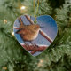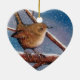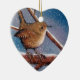 ORNEMENT CŒUR EN CÉRAMIQUE ROITELET EN HIVER : PASTEL D'HUILE : ORNEMENT