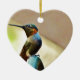 Ornement Cœur En Céramique Ruby perché et petit colibri vert