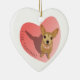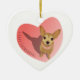 Ornement Cœur En Céramique Tan Chihuahua in diamond pink collar en heart