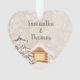 Personnalisez ce décor cabine chaleureux avec des noms de destinataires. Belle scène hivernale - avec des arbres enneigés. Joli beuverie !