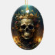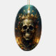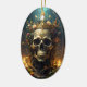 Cette oeuvre d'art présente un crâne orné, orné d'une couronne royale, intimement mêlé de vignes luxuriantes et de fleurs éclatantes. Des bougies à flickering ajoutent une lueur mystique, jetant des ombres dynamiques qui donnent vie à la scène. Tout cela dans un cadre forestier serein, créant un équilibre saisissant entre beauté et mystère.