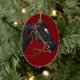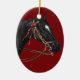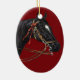 Cet ornement présente une belle image d'art vintage d'un cheval noir éclaboussé, avec ruban, sur un arrière - plan rouge vif. L'image est imprimée des deux côtés. Un cadeau parfait pour cet amateur de cheval dans votre vie!