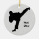 Grand ornement de Noël d'arts martiaux pour le joueur que vous connaissez. L'avant comporte une silhouette d'un coup-de-pied de karaté. Au-dessous du dessin est un espace fait sur commande pendant un nom et une année. Le dos a un espace pour une photographie faite sur commande de votre choix.
