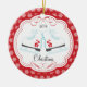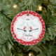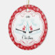 Daté et a personnalisé des paires mignonnes d'ensemble d'ornement de Noël de raies de glace sur un arrière - plan rouge et blanc de motif de flocon de neige. Un cadeau de Noël de merveille sure à priser depuis de nombreuses années pour venir.