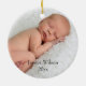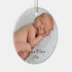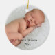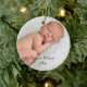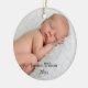 L'ornement comporte la photo de votre bébé. Il a la pièce pendant le nom et l'année de votre bébé. Si vous préférez le nom et l'année peut être laissée vide, des deux côtés ou juste un côté. Cet ornement fait un grand cadeau pour des parents, ou pour votre propre arbre. Ce devient une tradition gentille à ajouter dessus à annuellement.