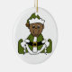 Un bébé afro-américain vêtu d'un costume d'elfe vert sur un ornement, vous pouvez facilement customiser avec votre propre texte avant de commander.