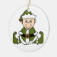 Un bébé vêtu d'un costume d'elfe vert sur un ornement, vous pouvez facilement customiser avec votre propre texte avant de commander.