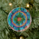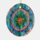 Mandala de conception peinte à la main sur tissu pour protection et bonne vibration. Mandala vert, orange, jaune, bleu, violet, doré, éléments floraux et cercle.