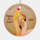 Belle décoration du Nouvel An avec des oiseaux flamants, un chapeau de Père Noël et des flocons de neige. Facile à ajouter du texte personnalisé et l'année.
